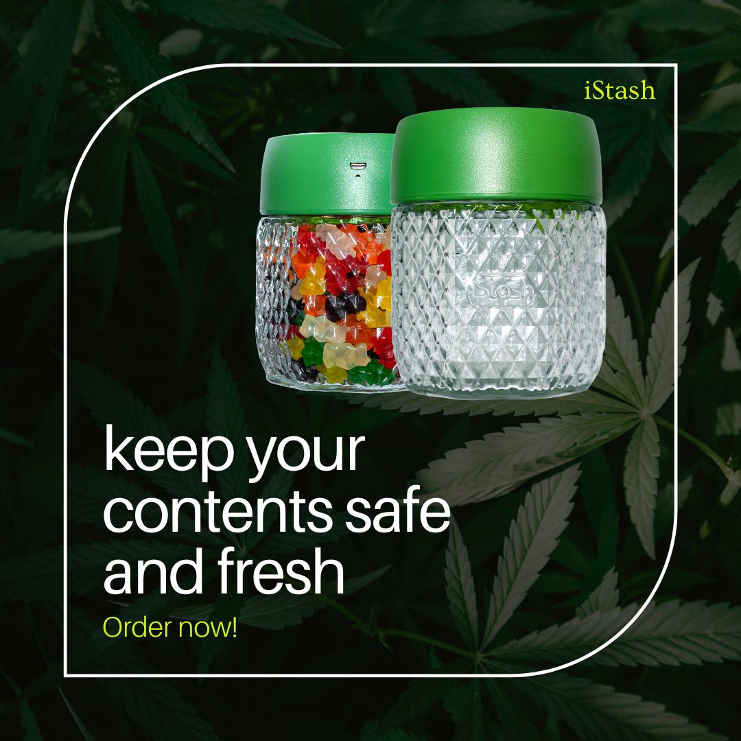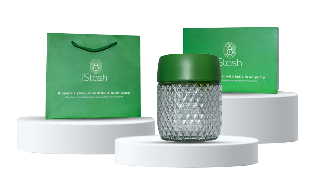 built-in vacuum pump, it will extract all air inside the container in about 30 seconds, creating a vacuum so strong that it will make it impossible to remove the lid. All its contents will remain fresh in an air tight environment, and just like a can of soup, iStash will allow long term storage of your important stash.